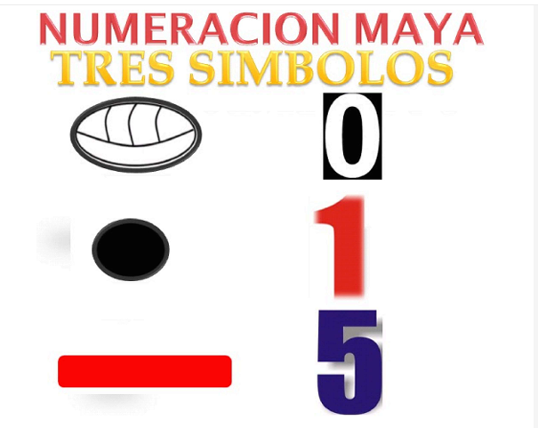 El sistema vigesimal maya, aunque de base veinte, solamente emplea tres símbolos para su representación. La unidad o uno es representada con un simple punto. El cinco o múltiplos de este número eran representados con una línea. Pero el símbolo que encierra una revolución en el mundo de las matemáticas fue un caracol: que representa al número cero.