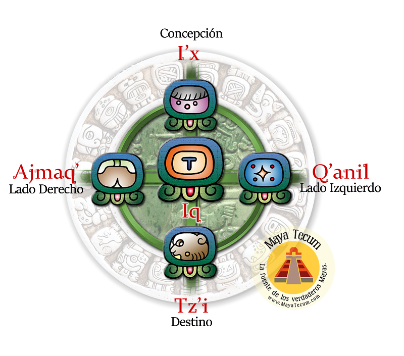 La persona nacida ante el día IQ’ es engendrada en I’X y su destino lo rige el TZ’I’. El signo del IQ’ es el más sensitivo y más analítico de todos los signos.