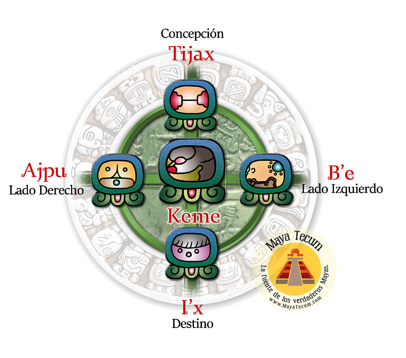 La persona nacida ante el día KEME es engendrada en el día TIJAX y su destino lo rige el día I’X. El signo KEME le trae a la persona una inagotable fuente de protección. Prepara el campo para la vida futura, aunque no sea consciente de esto.