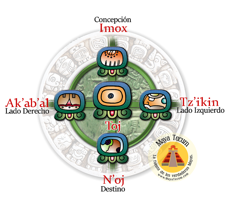 La persona nacida ante el día TOJ es engendrada en IMOX y su destino lo rige el día NO’J. Este signo le da un poder especial para desarrollar su fuerza interior, debe utilizar ese poder para fines positivos y no despilfarrar en cosas negativas.